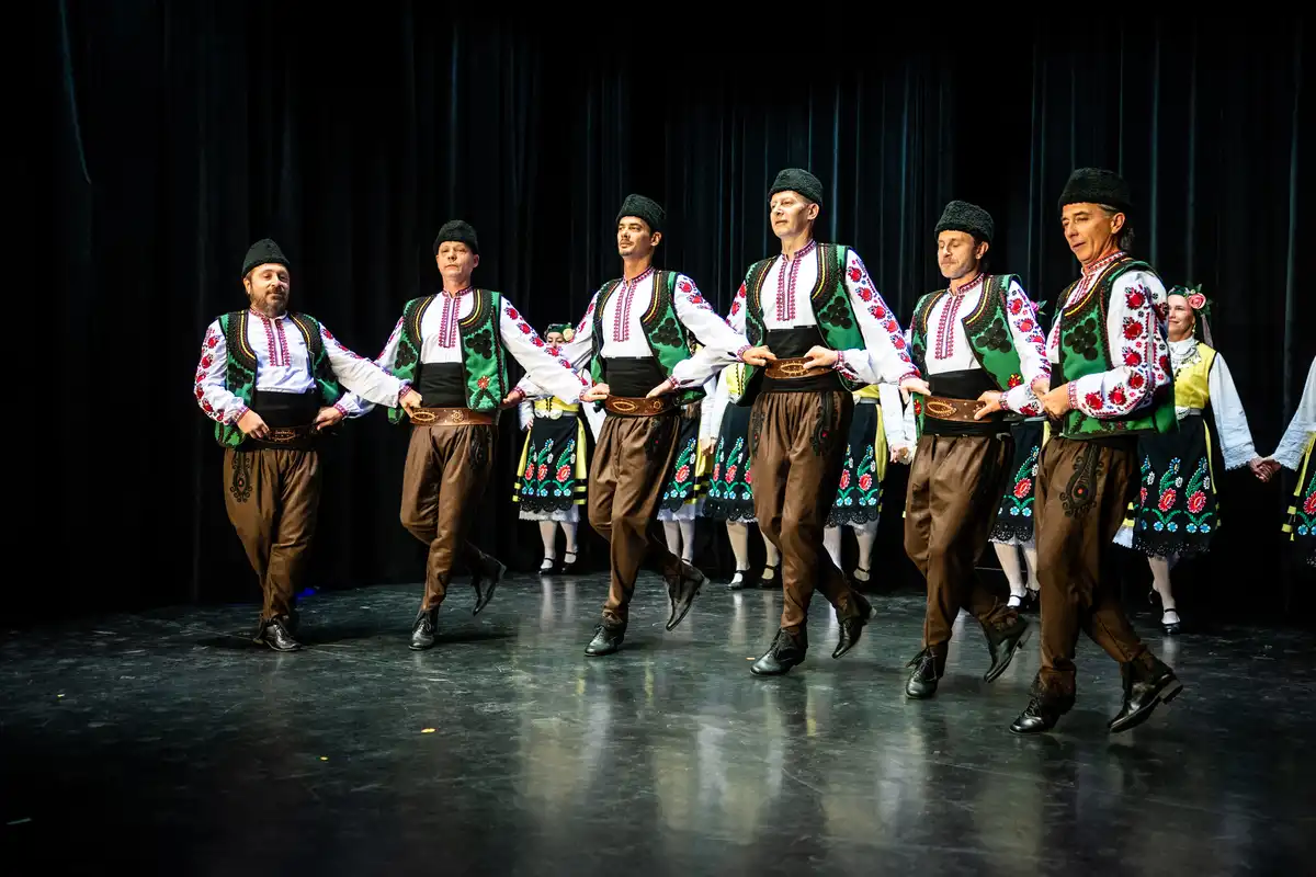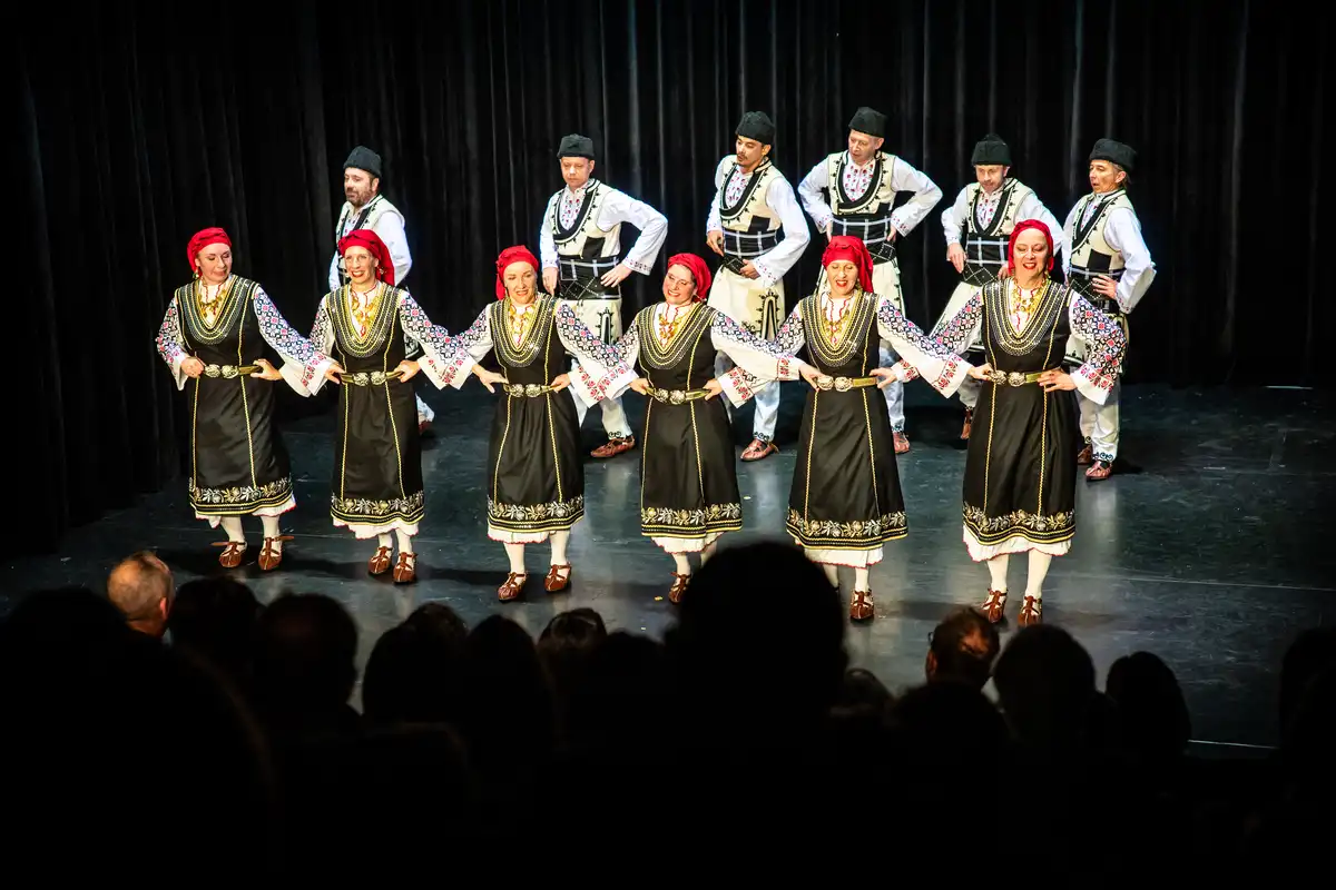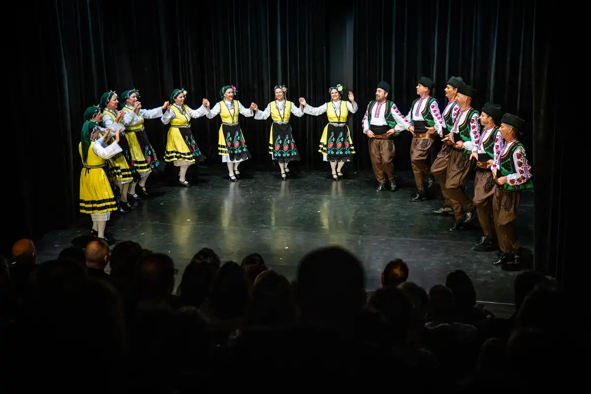 A 19 órakor kezdődő műsorban vidini, dobrudzsai, trák és shop vidéki koreográfiákat láthatott az ünneplő közönség, mely teljesen megtöltötte a rendezvény helyszínéül szolgáló Békéscsbai Napsugár Bábszínház nézőterét.