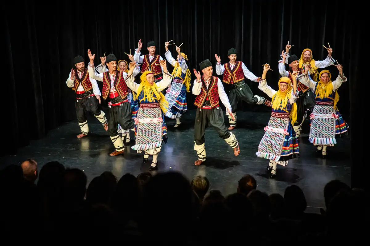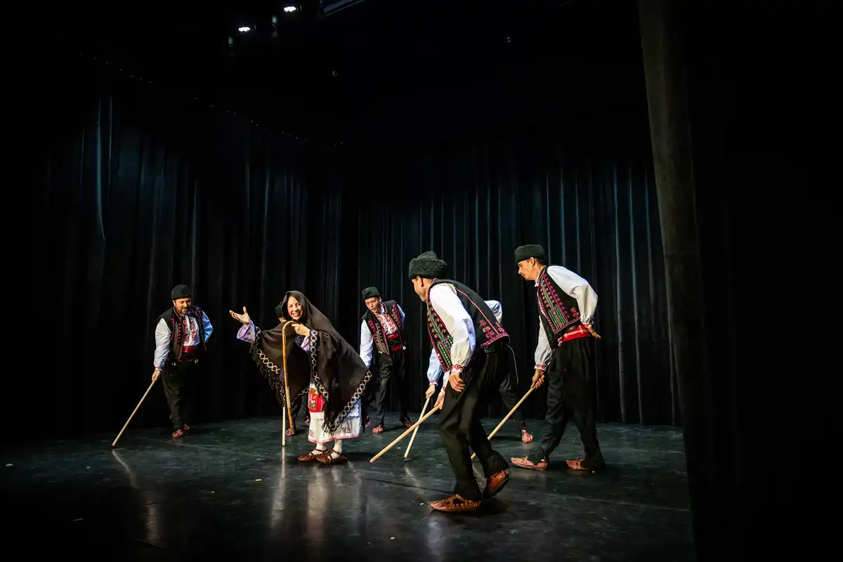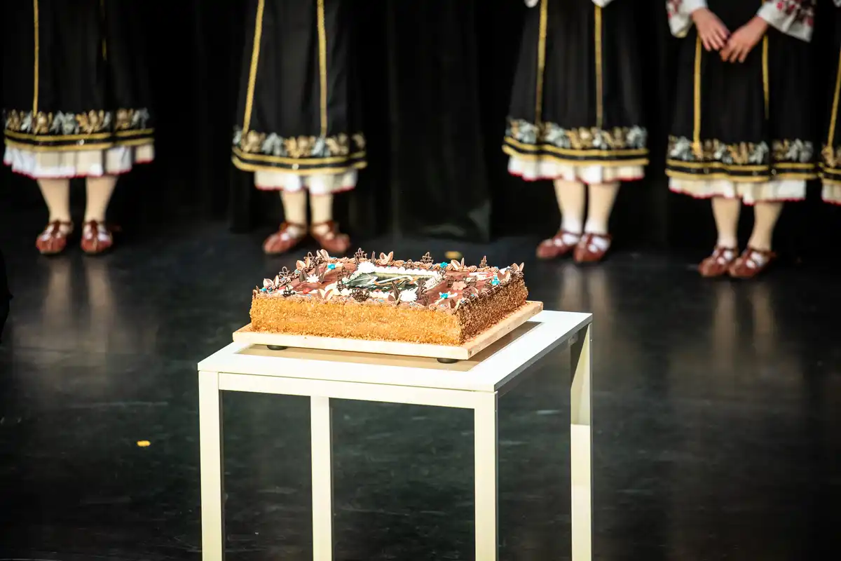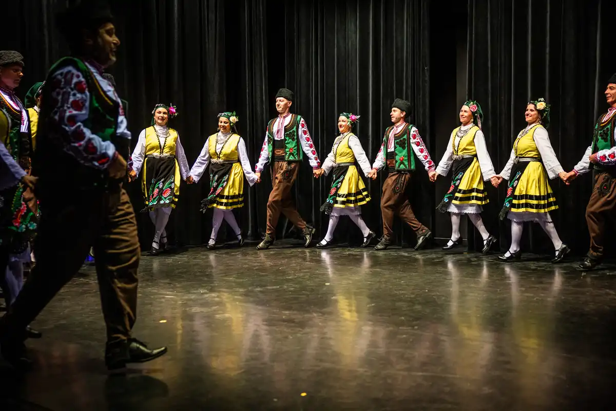 A 19 órakor kezdődő műsorban vidini, dobrudzsai, trák és shop vidéki koreográfiákat láthatott az ünneplő közönség, mely teljesen megtöltötte a rendezvény helyszínéül szolgáló Békéscsbai Napsugár Bábszínház nézőterét.